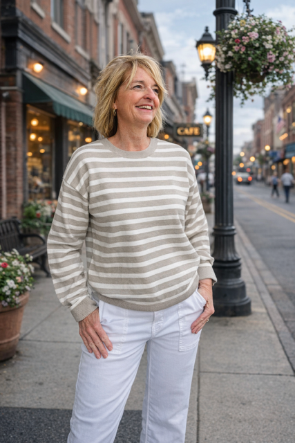 Gretchen Relaxed 3/4 Sleeve Striped Sweater: Natural